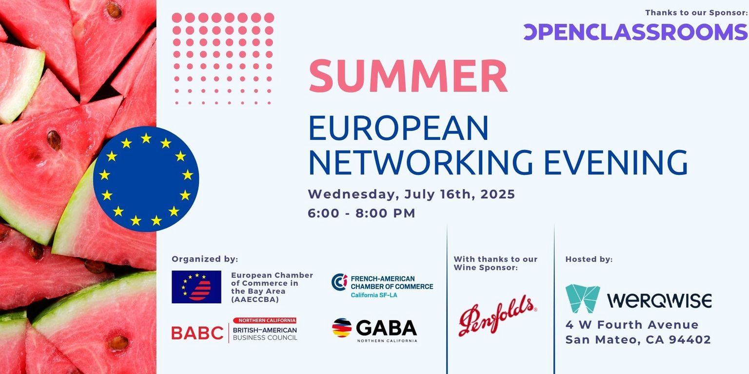The French American Chamber of Commerce of California in partnership with the American-European Chambers of Commerce and Business Associations invites you to join another wonderful European Networking Event.