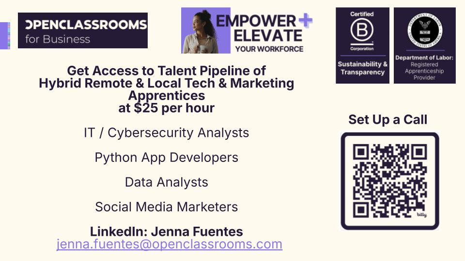 OpenClassrooms offers access to a diverse, hybrid talent pipeline of experienced Social Media Marketers, PythonDevelopers, & Data Analysts