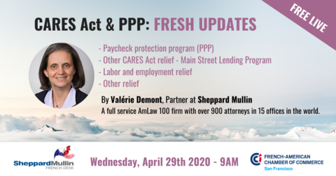 Please join Valérie Demont, Partner at Sheppard Mullin, for a fireside chat about CARES Act & PPP. Join us on Wednesday, April 29th at 9AM PDT!