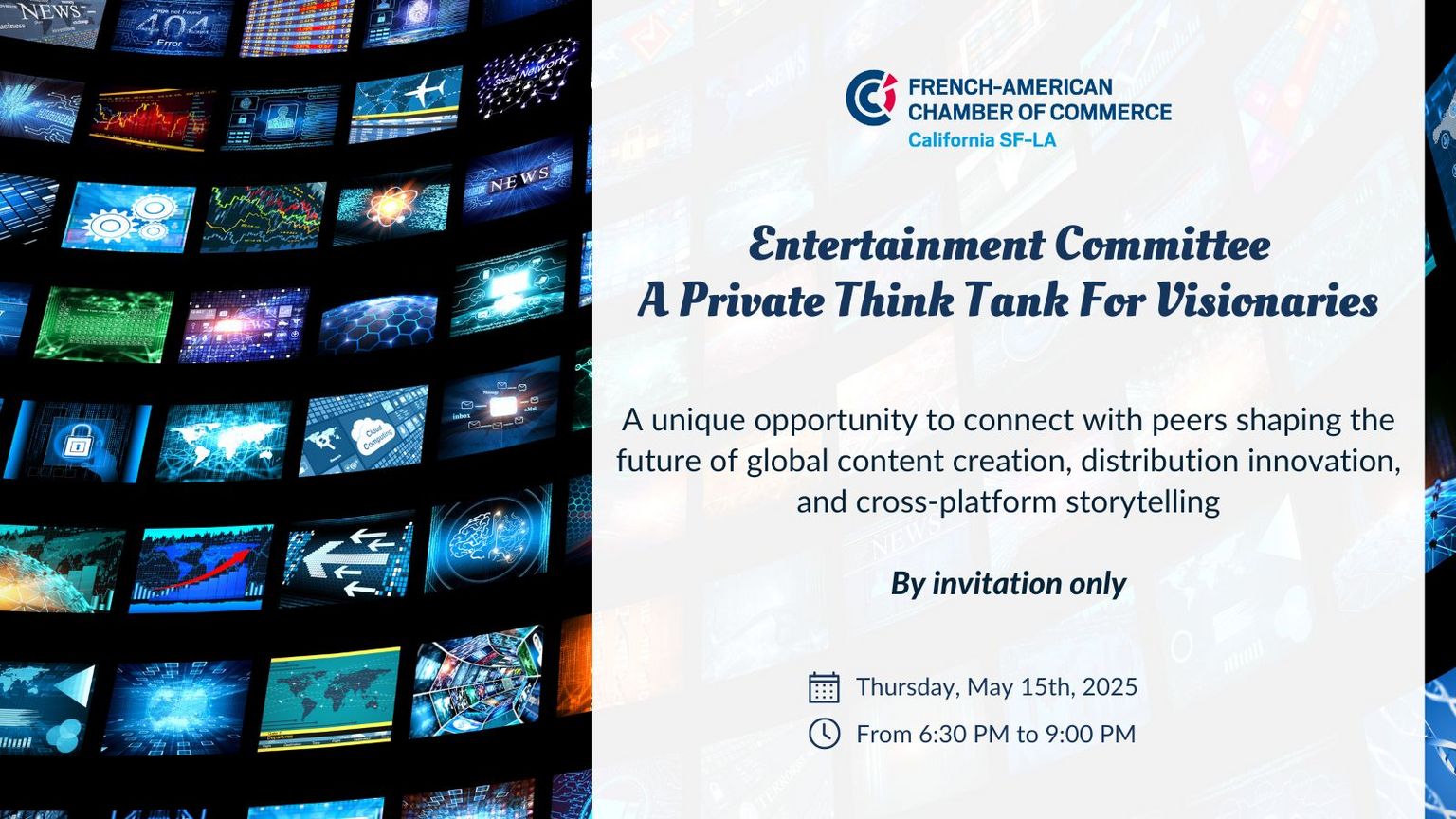 Join the French American Chamber of Commerce (FACC) Entertainment Committee for an invitation-only executive meeting, bringing together Los Angeles' most influential entertainment leaders from major studios, streaming platforms, production companies, and technology innovators.