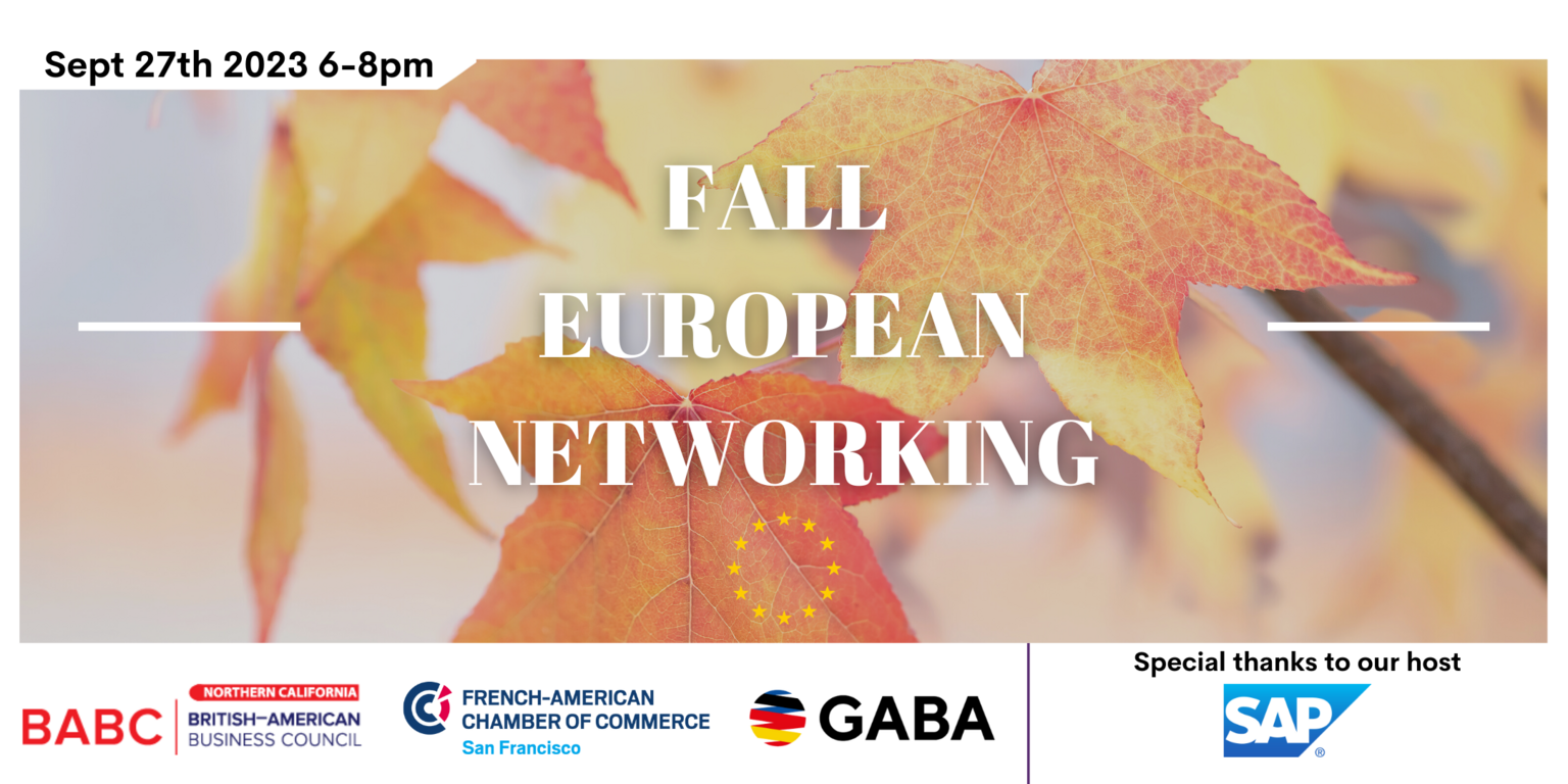 The French American Chamber of Commerce San Francisco, British American Business Council Northern California and German American Business Association, in cooperation with other European Chambers of Commerce, invite you to another wonderful European Networking Evening.