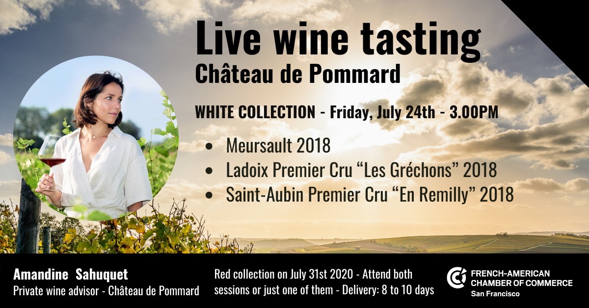 Get to know more about the beautiful Burgundy wine region and taste incredible wines from Château de Pommard. For this first session, Amandine Sahuquet will present three wines from the 2018 White collection