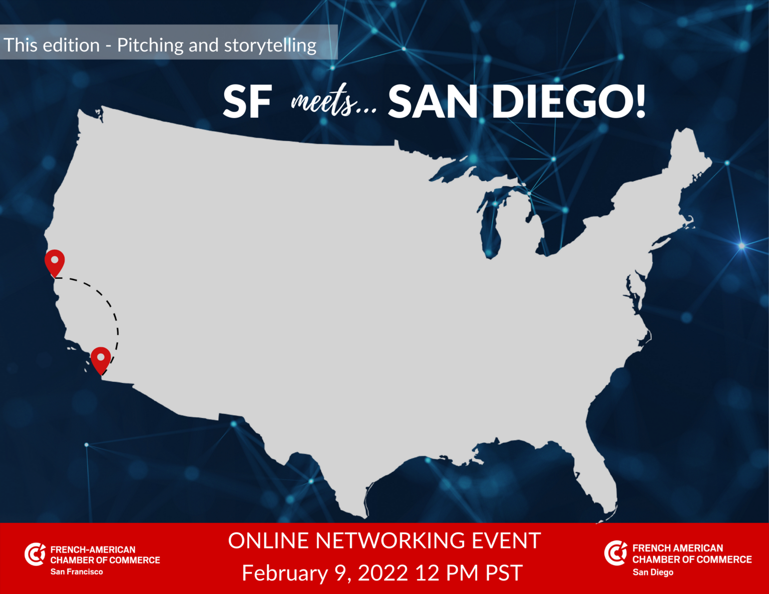 We’re bringing back our “SF Meets…” networking series starting on February 9 at 12 PM PST! Partnering with the San Diego Chamber, we’ll start with remarks from Catherine Moore, President at Bridge2Tek, followed by questions and an open discussion focused on pitching, storytelling, and starting conversations between members. Register now and we can’t wait to see you there!