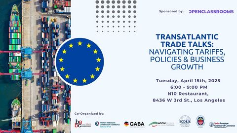 We are pleased to invite you to our next European business event in Los Angeles, organized in partnership with the British-American Business Council (BABC) LA, German American Business Association (GABA) Southern California, Italy-America Chamber of Commerce West (IACCW) Los Angeles, International Citizen Diplomatic of Los Angeles (ICDLA), the Swedish American Chamber of Commerce (SACC-LA) and the Swiss-American Chamber of Commerce Southern California.