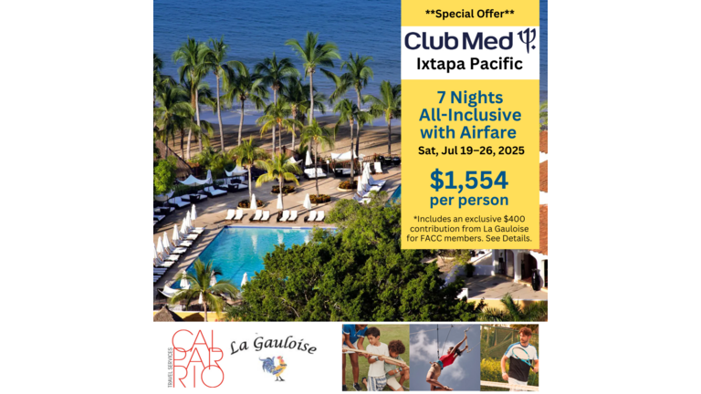 Escape to paradise with this unbeatable offer for FACC members, powered by La Gauloise and Calparrio Travel: 7 Days All-Inclusive at Club Med Ixtapa…