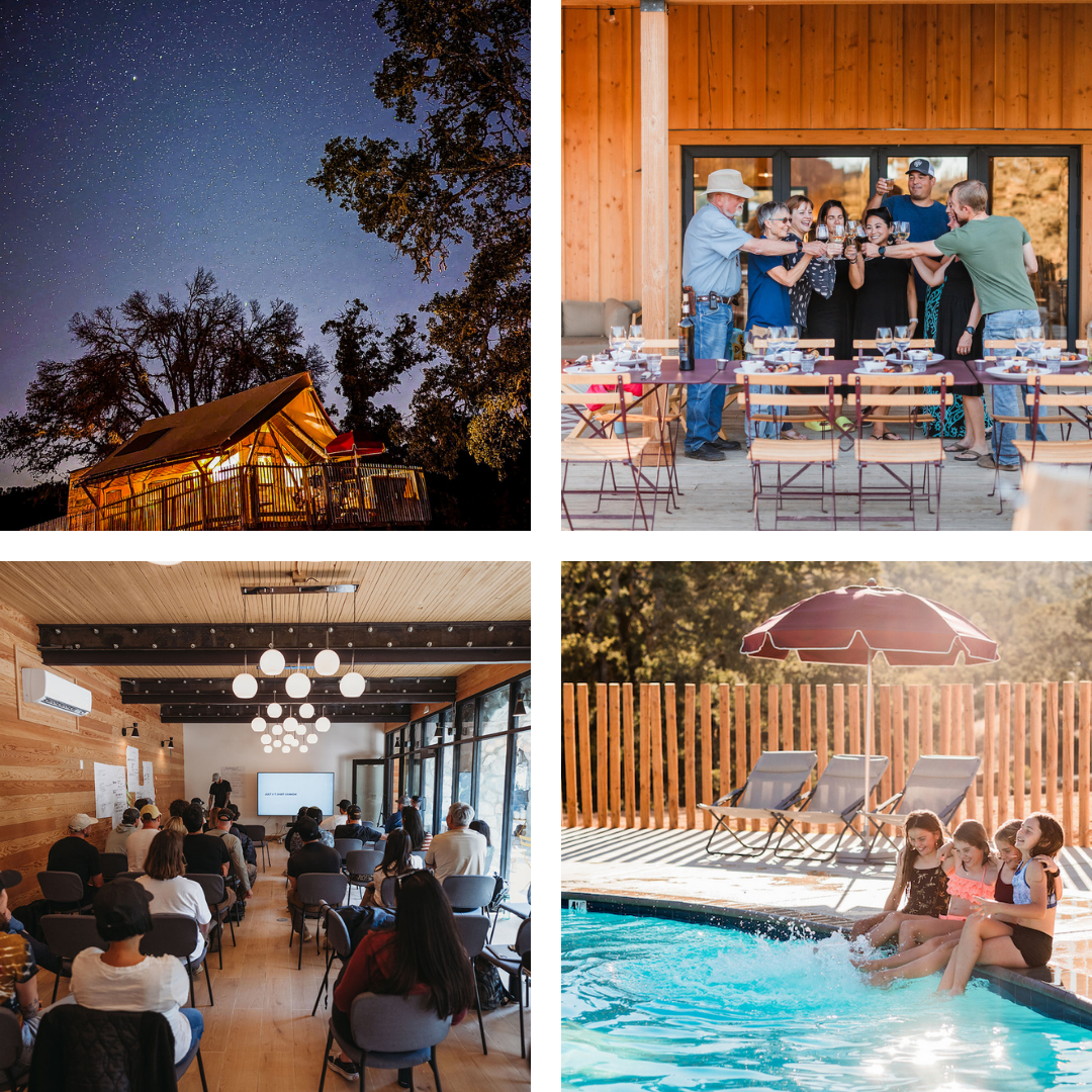 3 West Coast destinations: Huttopia Wine Country (near SF), Huttopia Paradise Springs(near LA), White Landing Catalina Camp (Catalina Island).